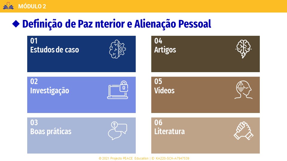 A segunda parte do módulo está direcionada para a parte teórica da paz interior e da alienação pessoal.