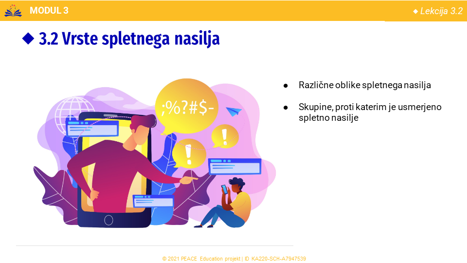 V praksi lahko spletna nasilja vključujejo različne vrste nadlegovanja, kršitev zasebnosti, spolne zlorabe in spolnega izkoriščanja ter predsodkov proti družbenim skupinam ali skupnostim. Vse oblike ali primeri spletnega nasilja niso enako hudi in za vse ni nujno potrebna kazenskopravna rešitev, temveč se lahko obravnavajo s stopenjskim pristopom in kombinacijo preventivnih, izobraževalnih, zaščitnih in drugih ukrepov.